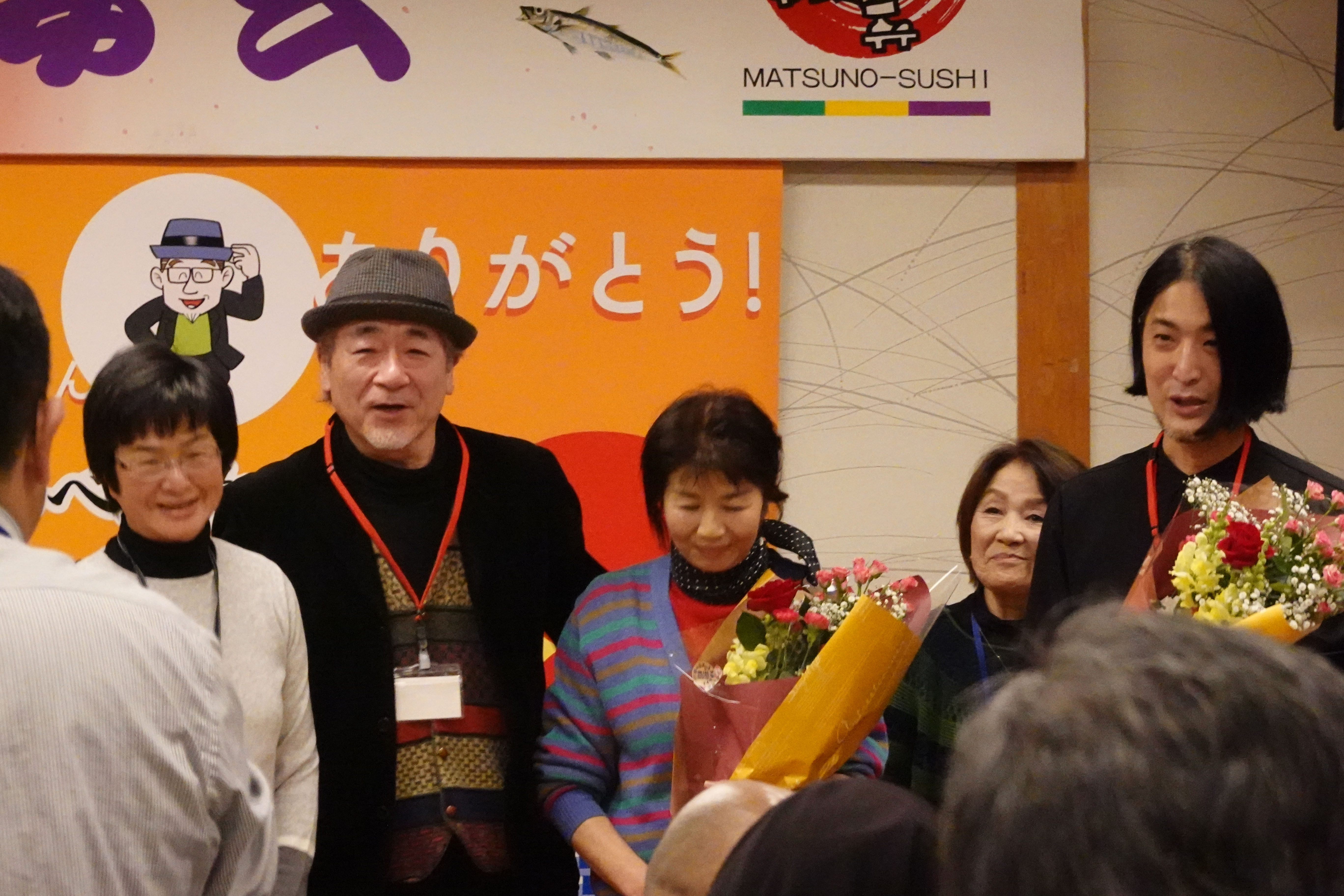 関係者に花束贈呈。