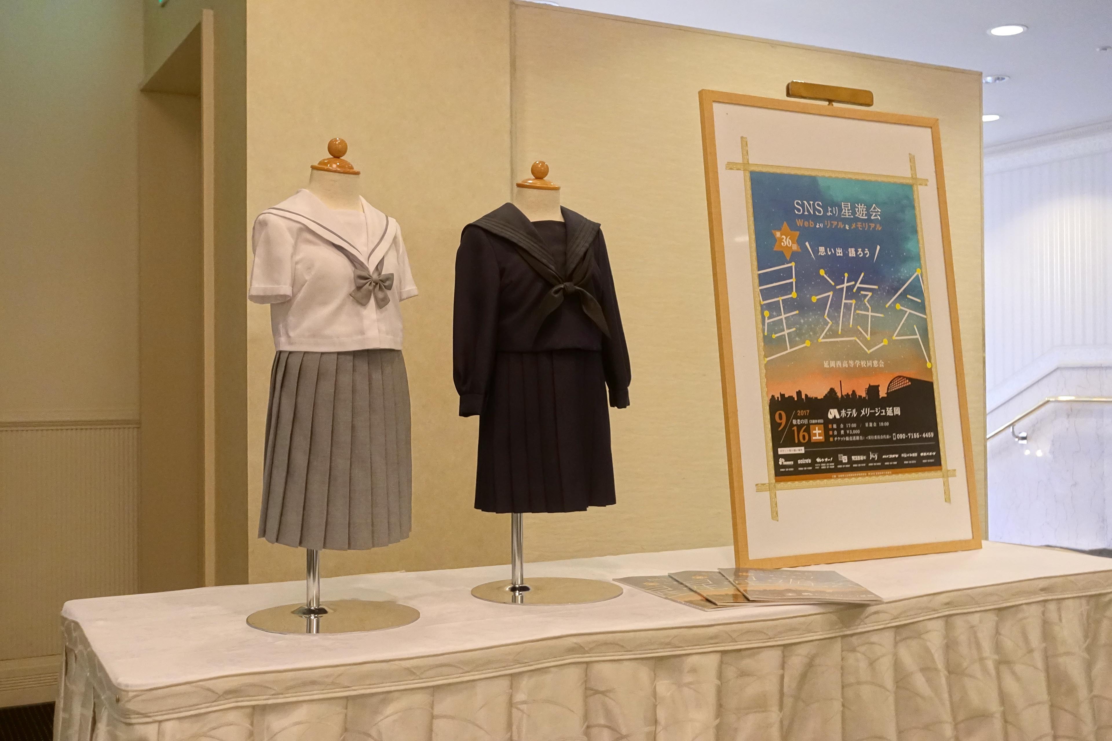会場入り口には制服のミニチュアと今年のポスターが展示されています。