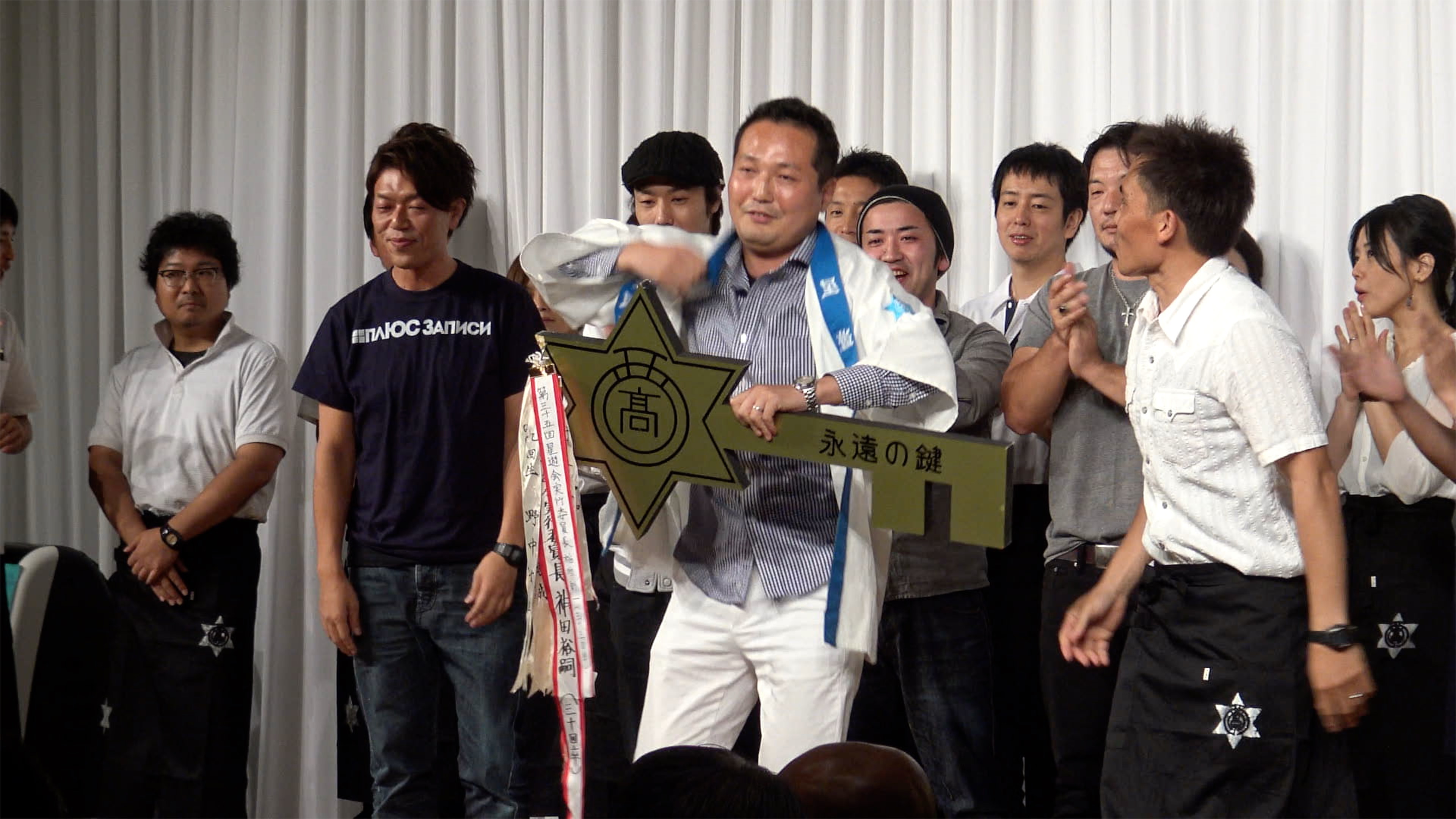会の最後に今年の実行委員の34回生から来年の担当の35回生に永遠の鍵と実行委員長の法被の引き継ぎが行なわれました。